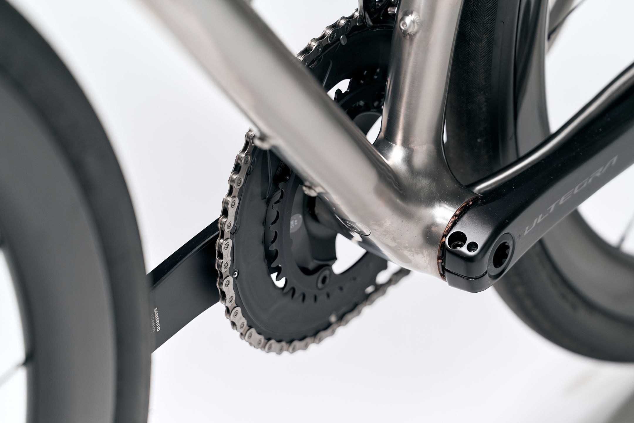 Fourche en titane brossé, imprimé 3D. Hauteur: 390mm / clearance: 700x45 / Poids: 740Gr.